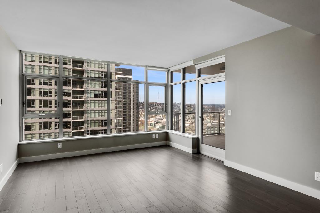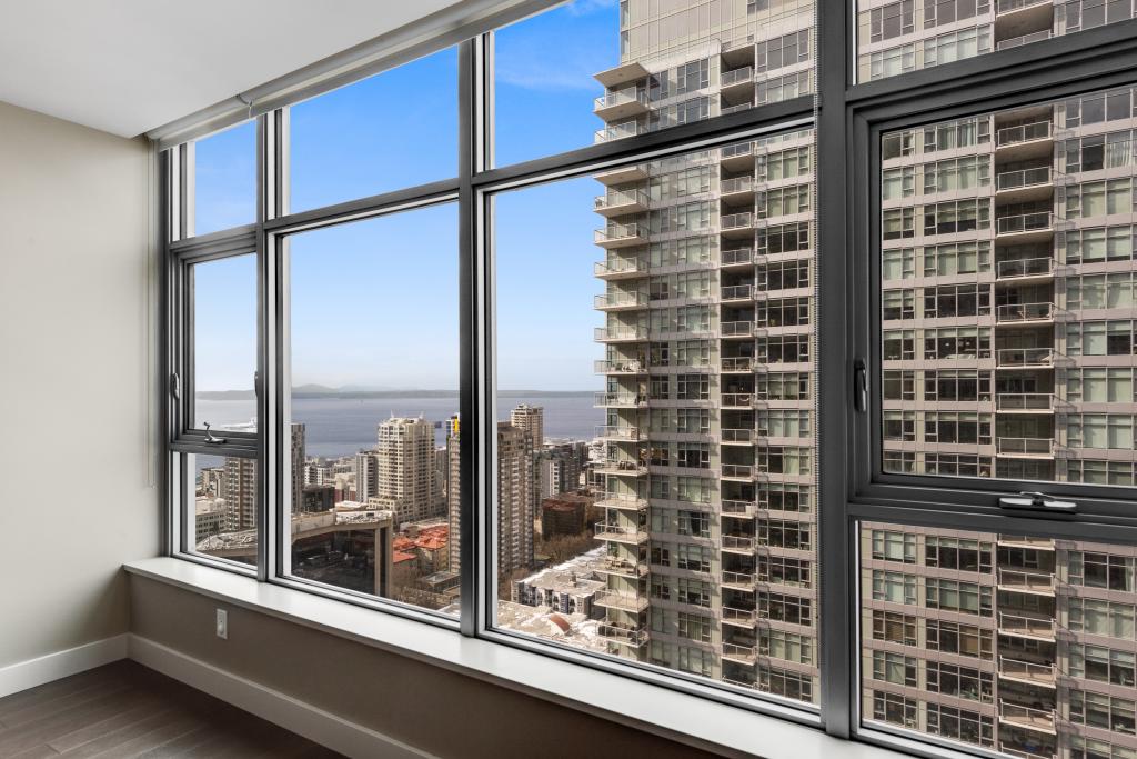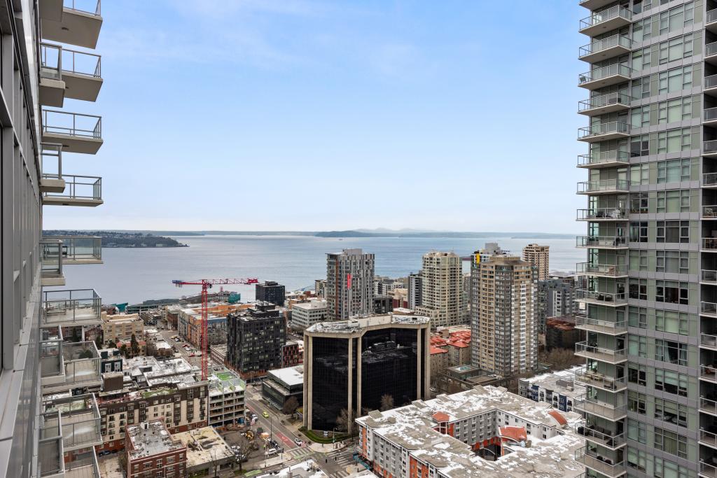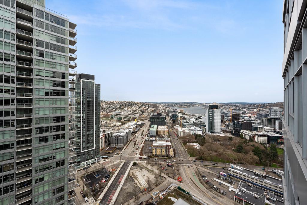 Available November: Immaculate 31st floor 2bd/1.75ba home with sweeping city, Lake Union & Elliott Bay views! Perched on the north side of the building, this sought-after floorplan features a spacious kitchen that overlooks the living/dining area, two graciously sized bedrooms, tons of closet space with custom built-ins, two luxurious spa-like bathrooms, a large covered balcony and phenomenal east-to-west views throughout! Gorgeous finishes include quartz kitchen countertops; sleek European-inspired cabinetry; Bosch stainless steel gas cooktop and cabinet-front dishwasher; Thermador cabinet-front refrigerator; Grohe faucets and fixtures; hardwood flooring in the kitchen and living room; plush carpeting in the master bedroom; Whirlpool washer/dryer; marble bathroom countertops; and central heating and A/C. Water, sewer, garbage, gas, and 2 parking included! Please call Ashley & Joe with Seattle Rental Group to schedule a showing of this amazing home- 206-245-5990