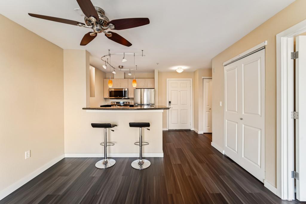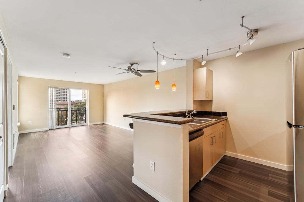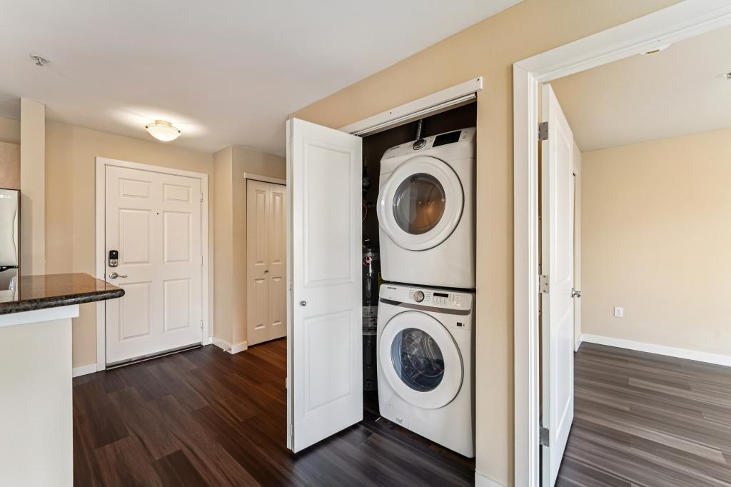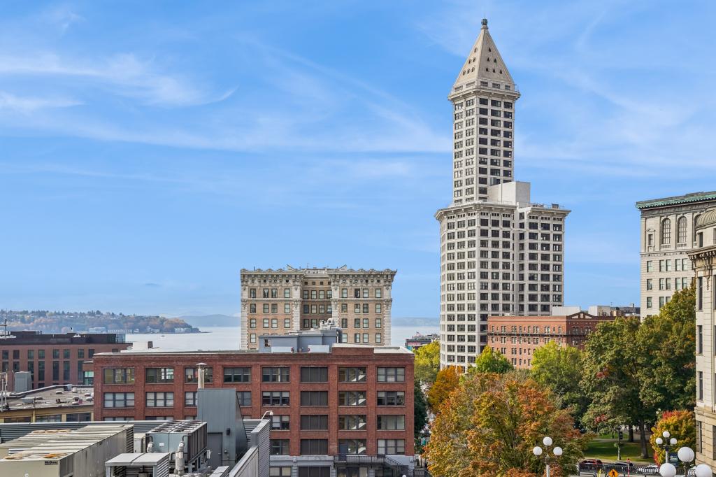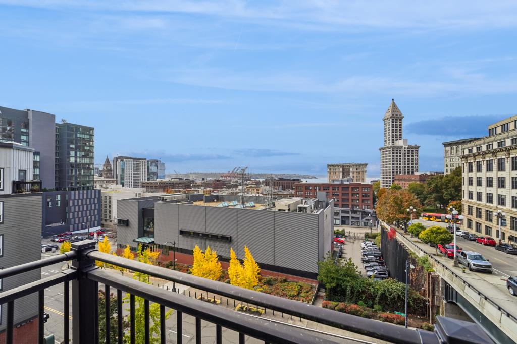 Experience urban living at its best in this top-floor 7th-floor home at Tobira Condominiums. The open layout features large windows showcasing beautiful city and Puget Sound views, updated flooring throughout, and a modern kitchen with granite countertops, stainless steel appliances, and a breakfast bar. Enjoy a spacious bedroom with ample closet space, in-unit laundry, and a private balcony. This home includes one assigned parking space in the secure garage.