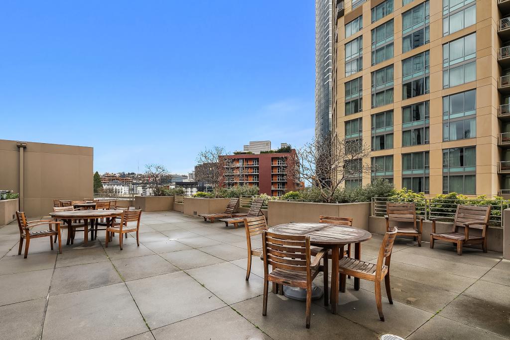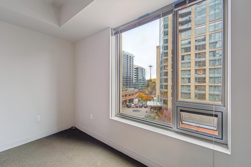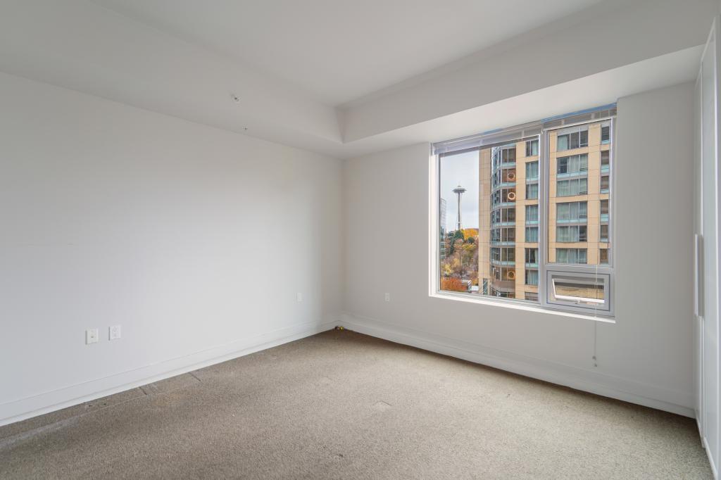 This beautiful 1 bedroom + den/1 bath condo boasts an open and well utilized floor plan of 918 sq. feet. Sunny and bright with northern exposure, a balcony, and Space Needle views. The home provides ample interior storage, a separate storage unit, and one parking space. Residents enjoy premier community amenities, including fitness center, entertainment, and gathering spaces, all in an unbeatable location near the brand-new "1 Hotel", Whole Foods, dining, shops, and transit.
