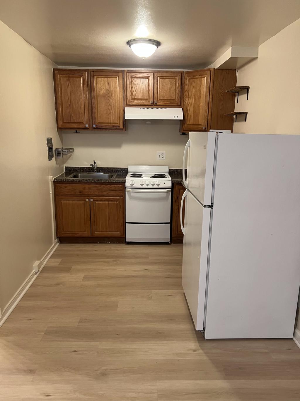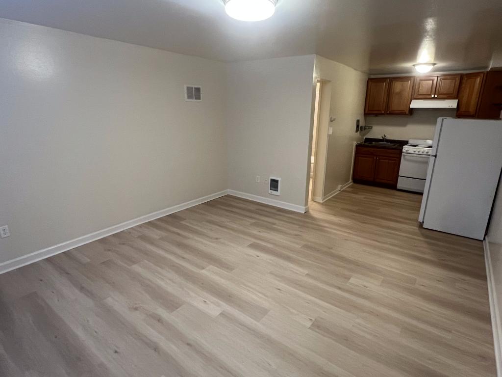 Spacious studio with a nice open floor plan, kitchen, and bathroom.